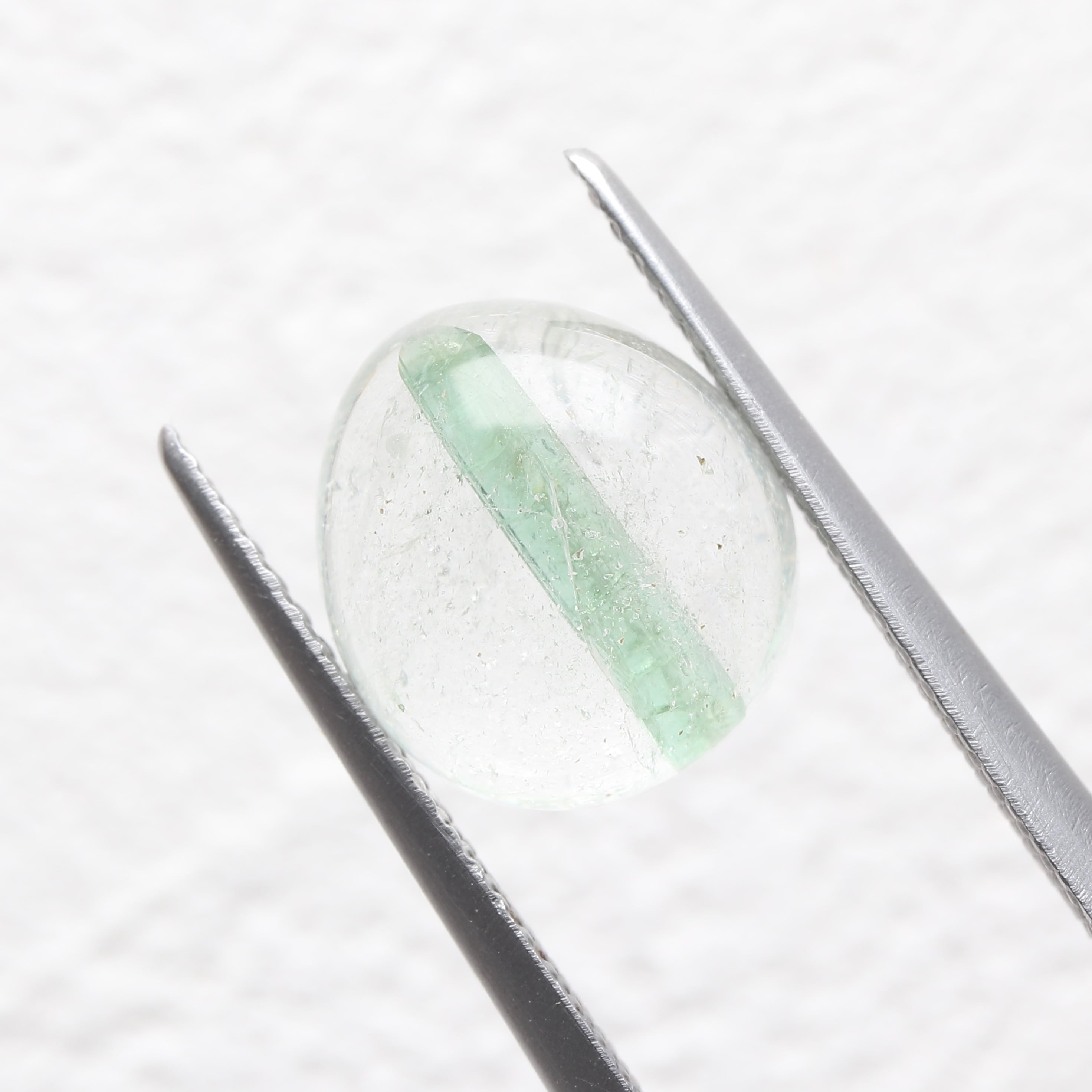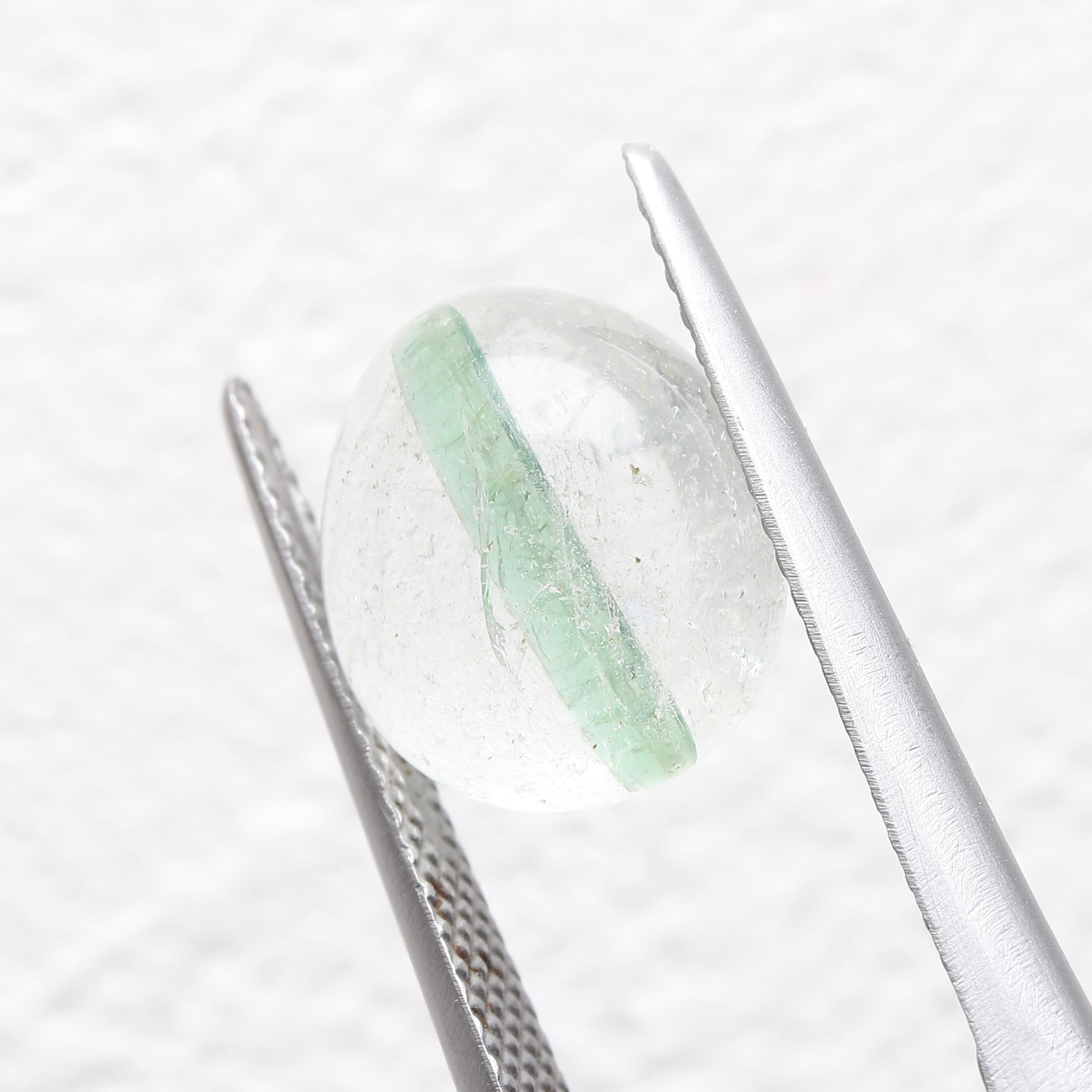 こちらはクォーツ内に柱状のグリーントルマリンが