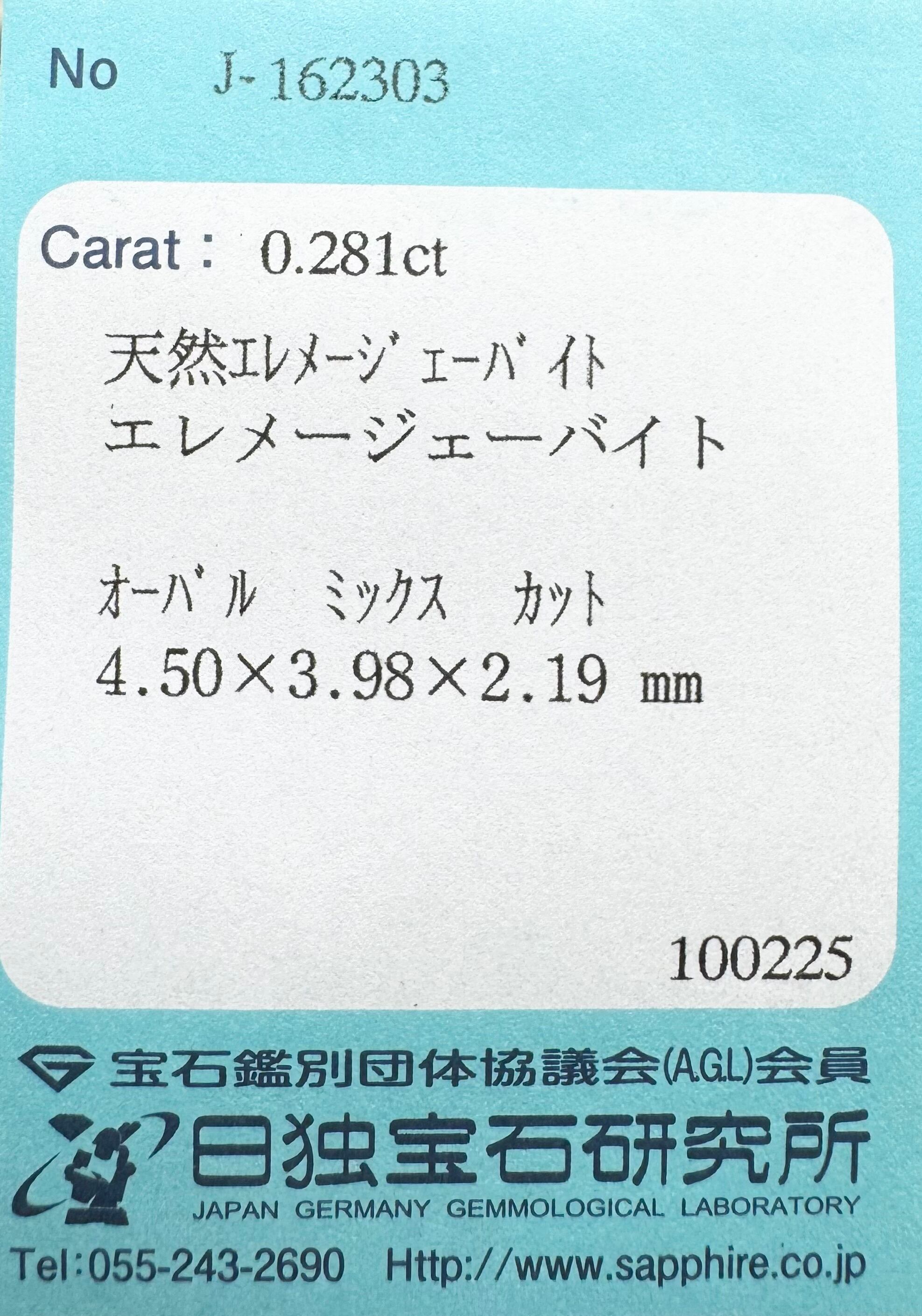 ジェレメジェバイト 0.281ct オーバル 日独ソ付き