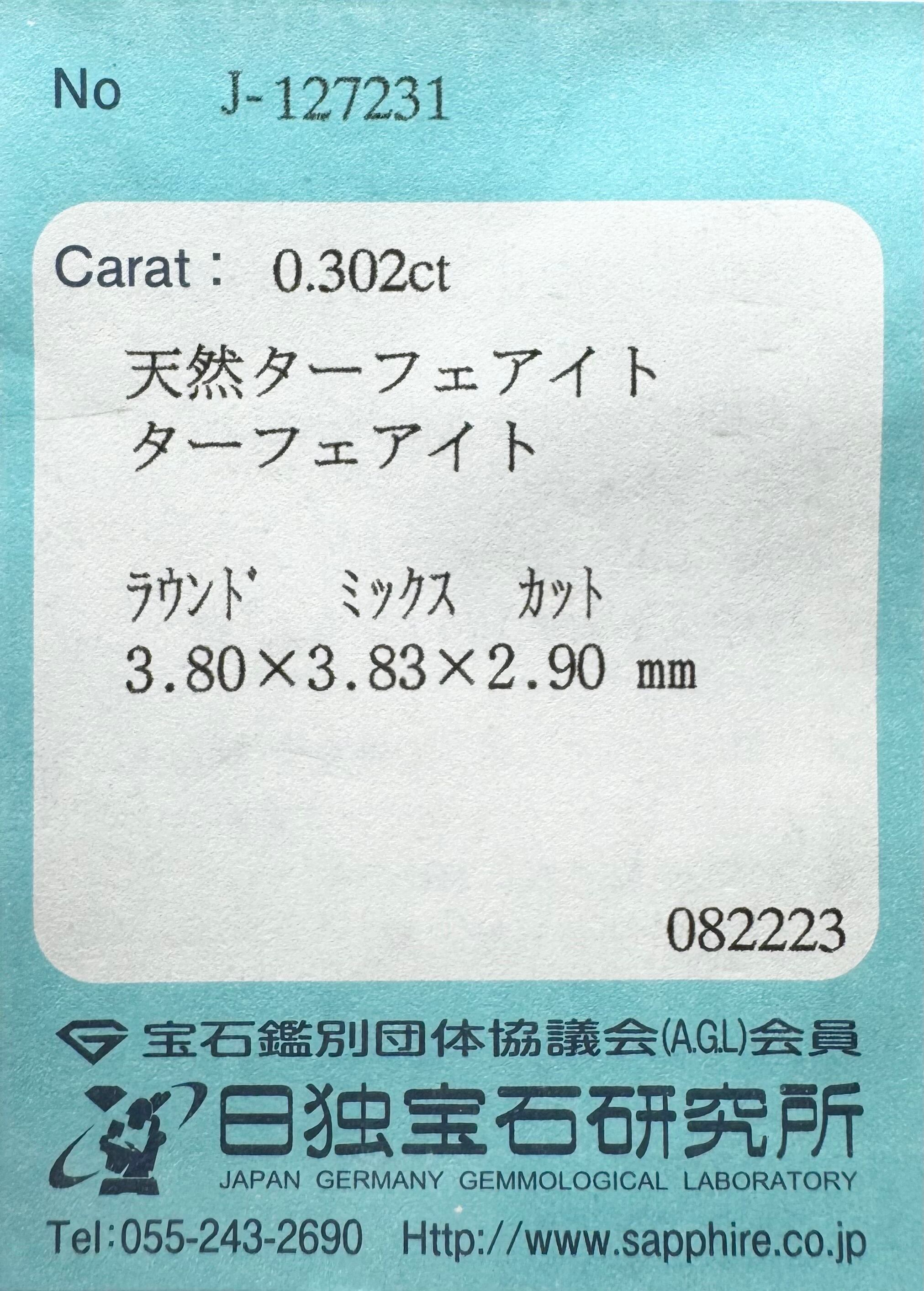 ターフェアイト 0.302ct ラウンド 日独ソ付き