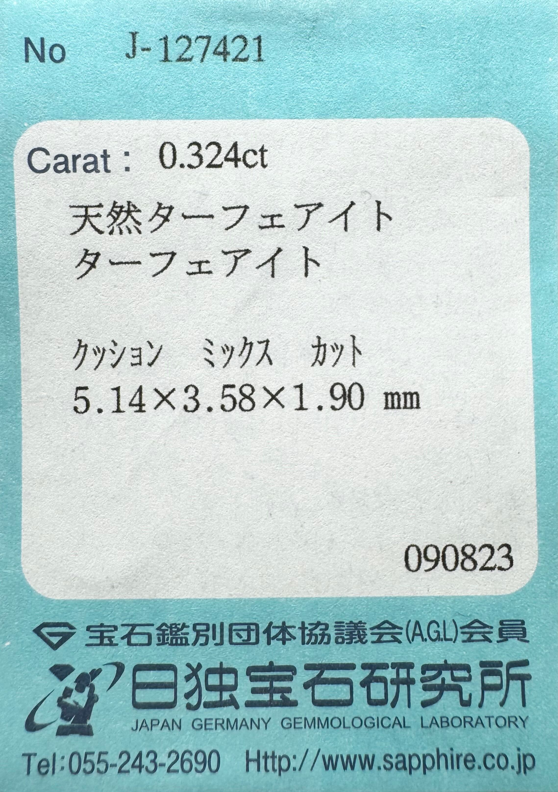 ターフェアイト 0.324ct クッション 日独ソ付き