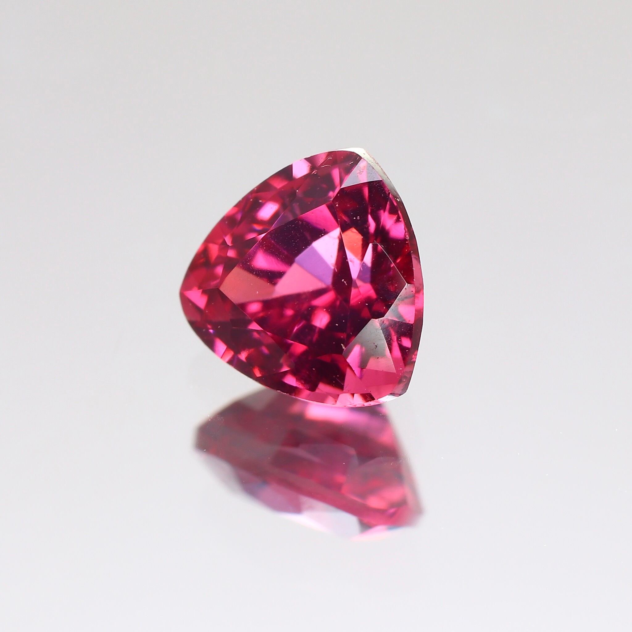 こちらは濃いめのラズベリー感のある美しいパープルスピネルで、珍しいトリリアントカットです♬