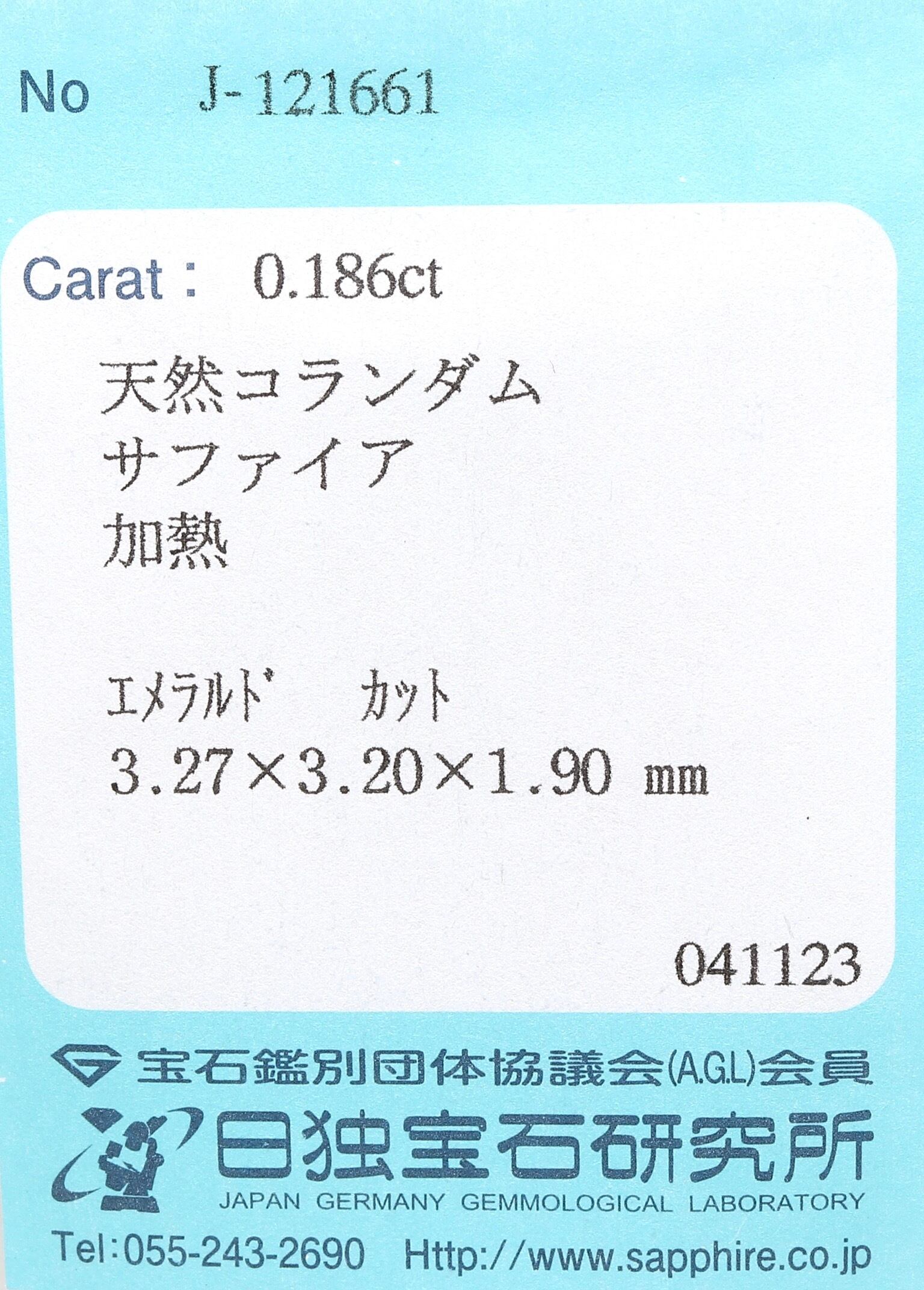 シルキーサファイア 0.186ct エメラルド 日独ソ付き
