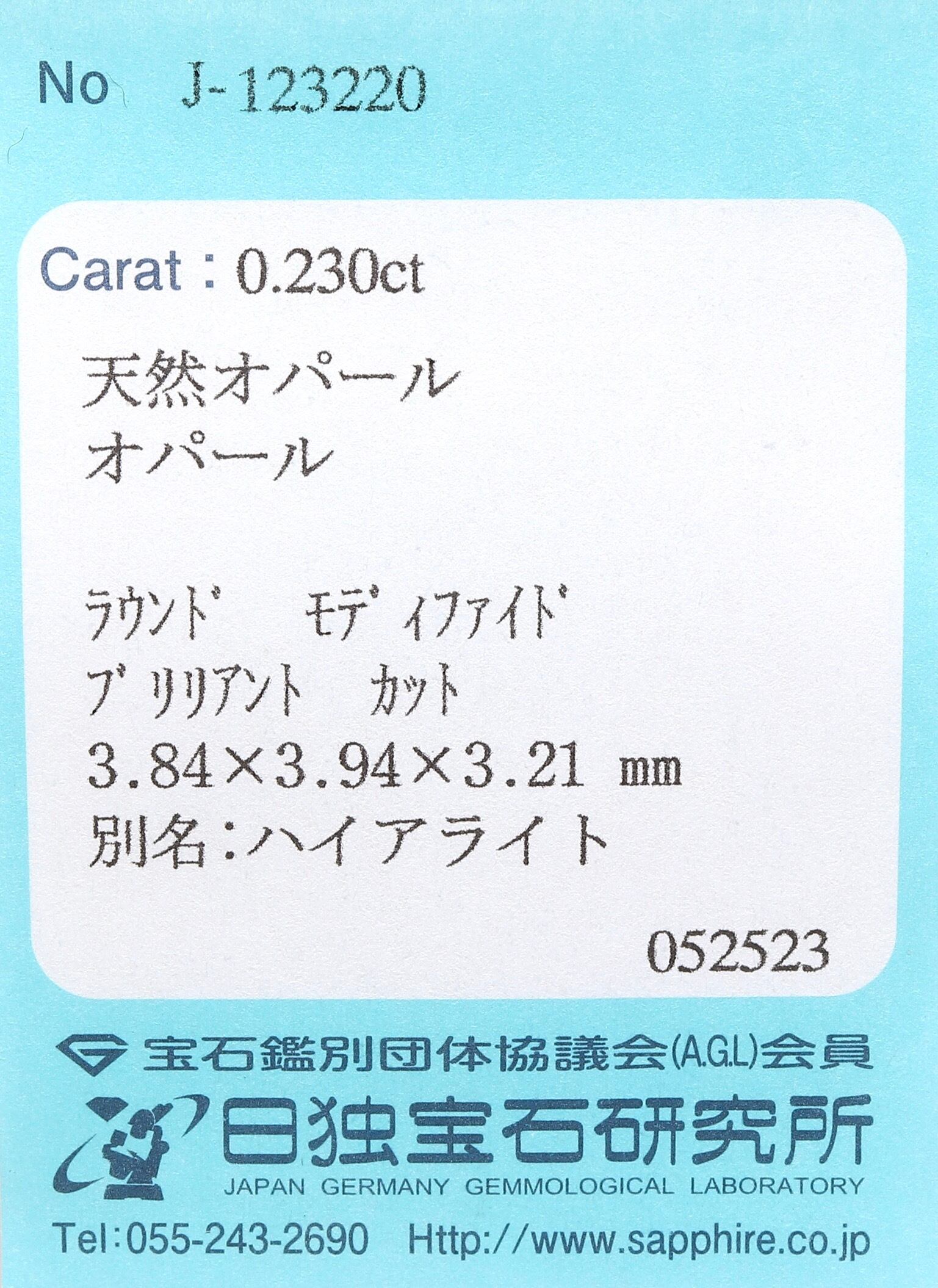 ハイアライトオパール 0.230ct ラウンド 日独ソ付き