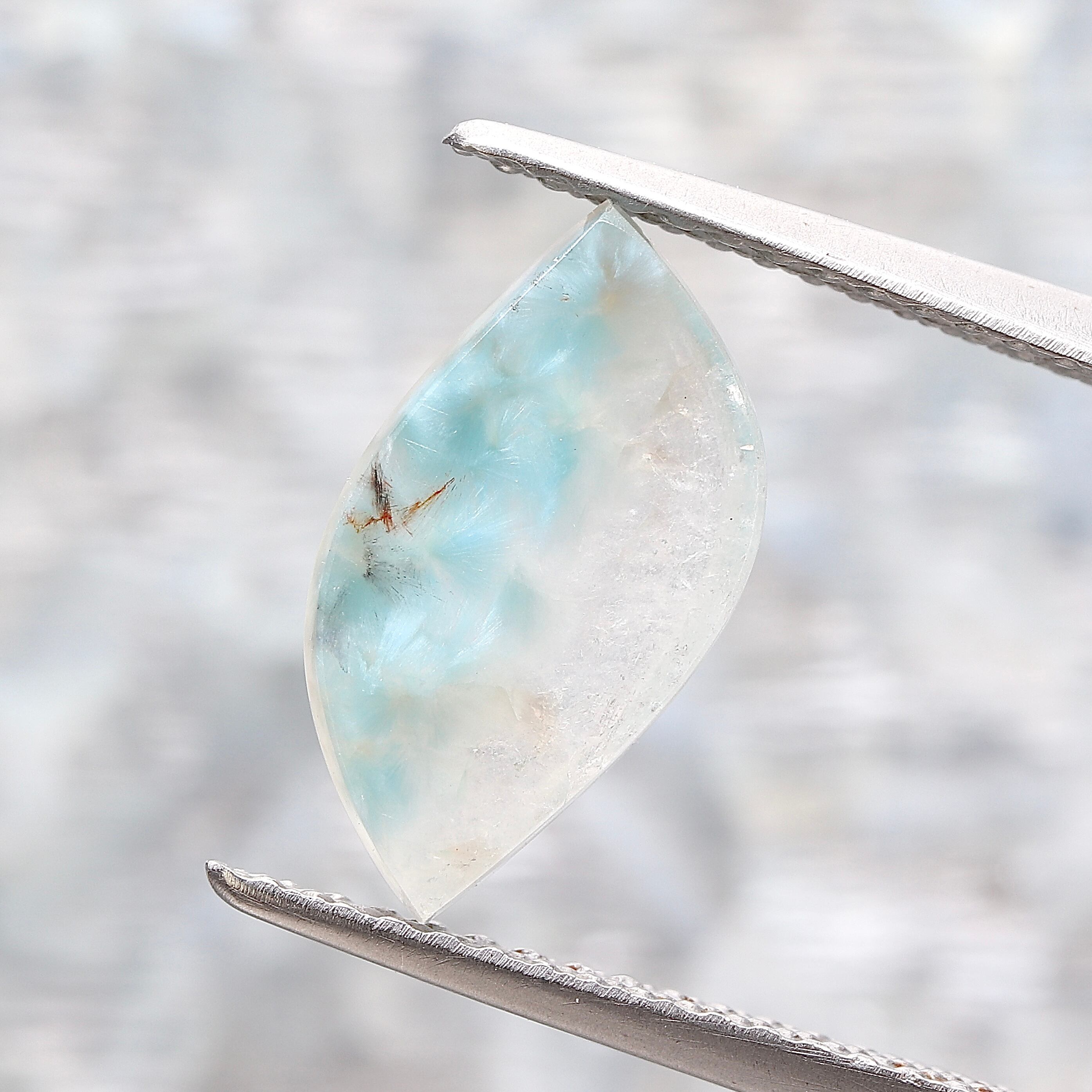 鉱物が内包された天然石で内包物であるギラライトの青色が